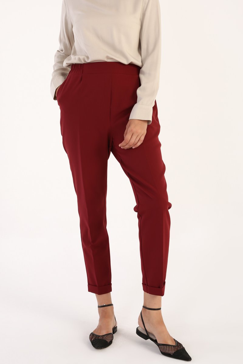 Allday Bordo Beli Lastikli Pantolon