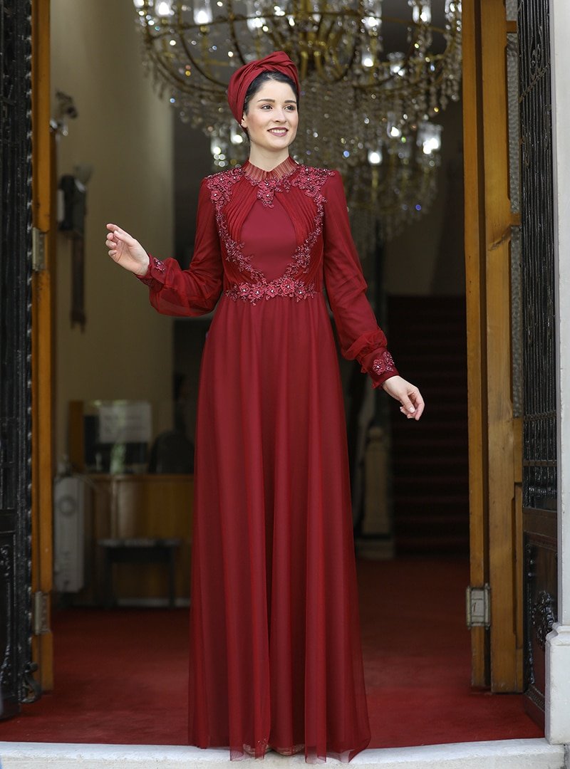 Burak Baran Fashion Bordo Su Abiye Elbise