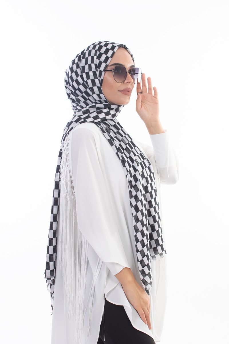 BijuHome Soobepark Tülbent Şal Siyah Beyaz Desenli
