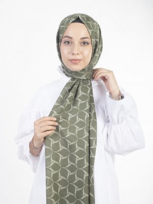 BijuHome Yeşil Soobepark Geometrik Desenli Tülbent Şal