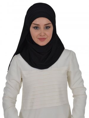 Ayşe Türban Tasarım Siyah Çapraz Pratik Penye Şal