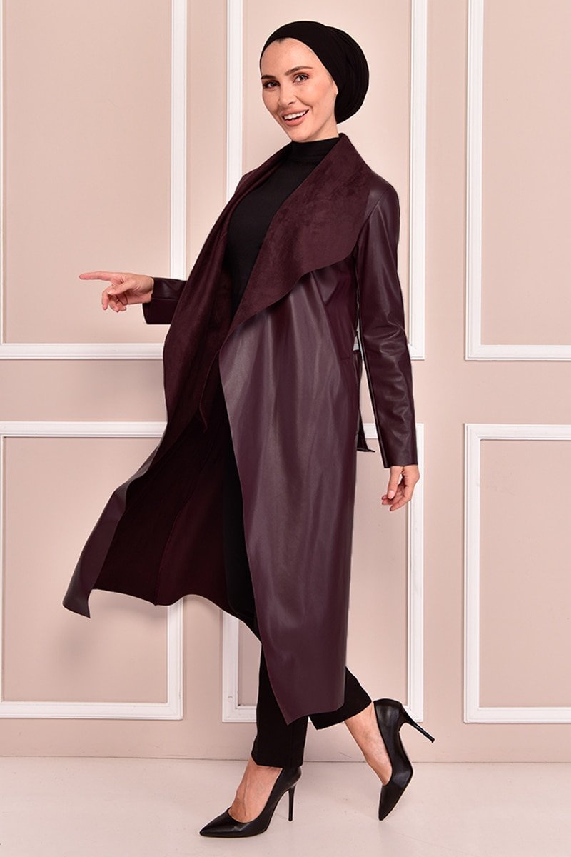 Moda Merve Mürdüm Deri Görünümlü Kap