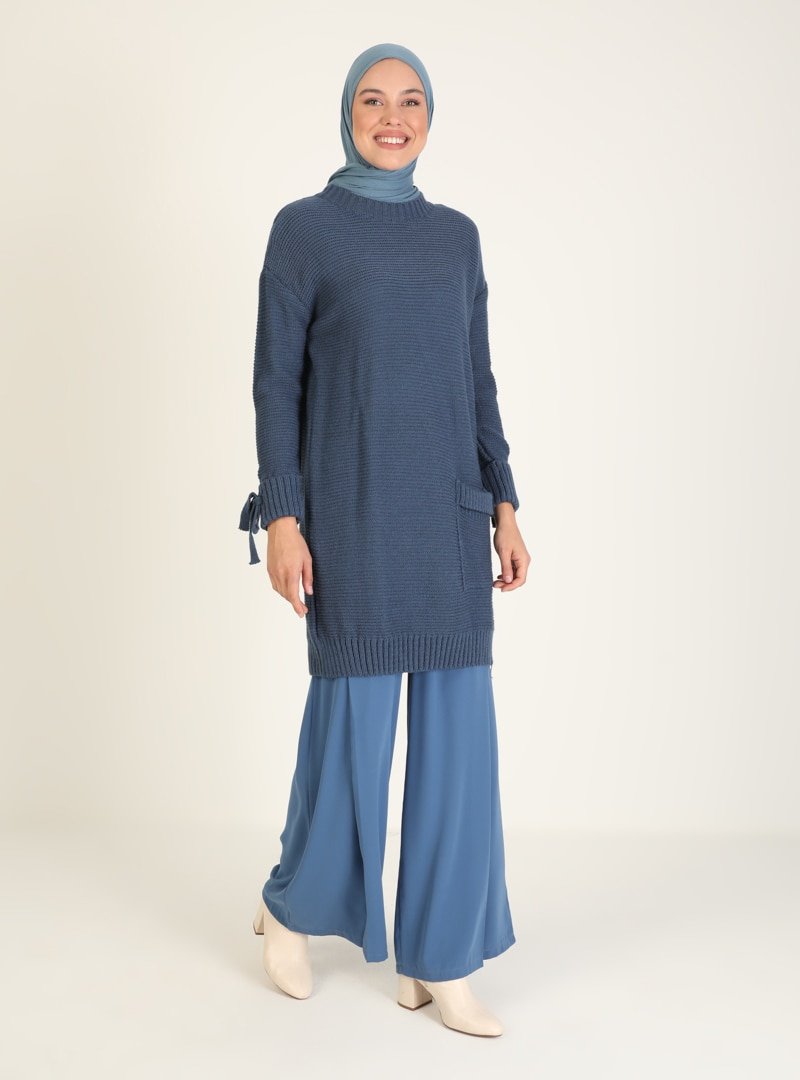 İLMEK TRİKO İndigo Cep Detaylı Triko Tunik