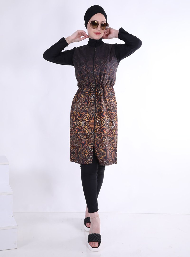 Ns Tasarım Tesettür Mayo Hardal Degradeli Paraşüt Kumaştan Lü Takım Mayo