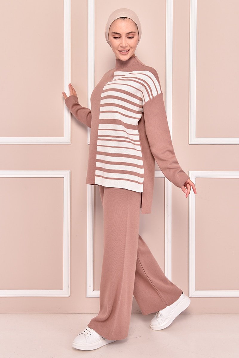 Moda Merve Pudra Triko Kombin