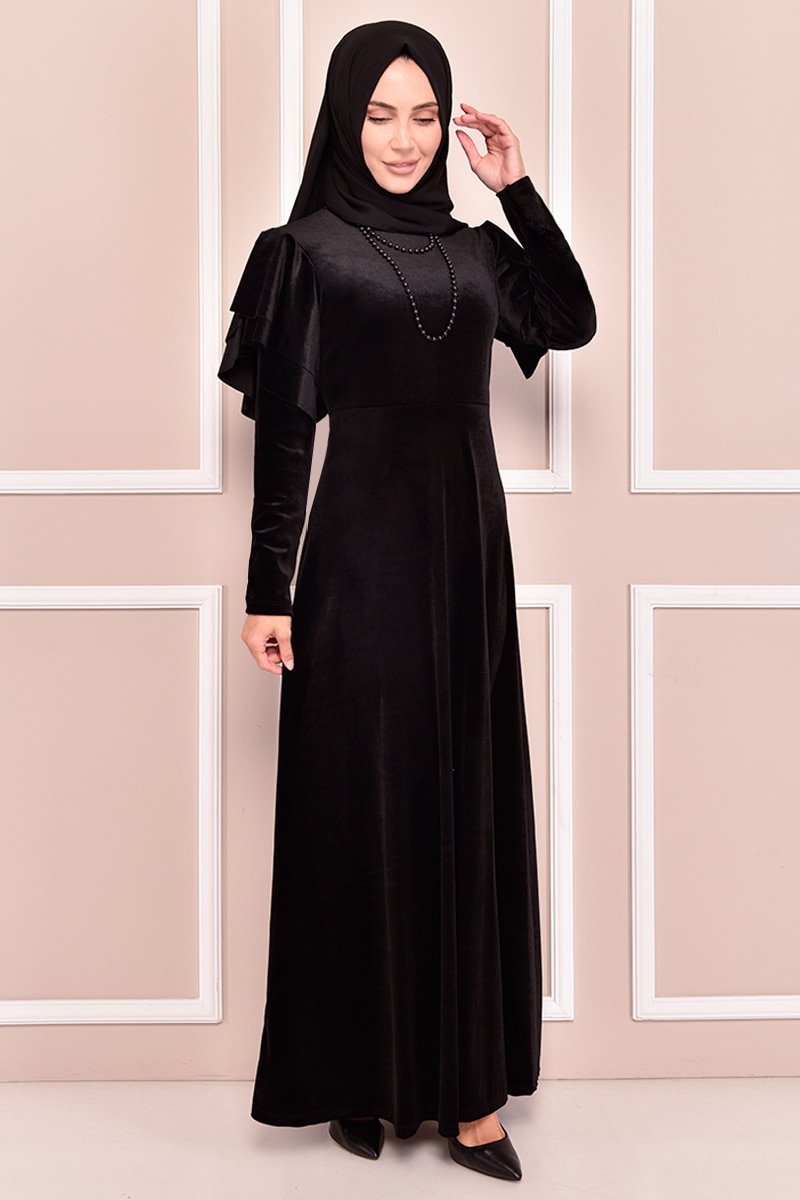 Moda Merve Siyah Kadife Elbise