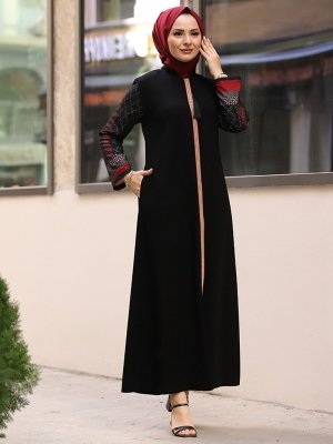 ŞAHİN FERACE Siyah Boydan Fermuarlı Ferace