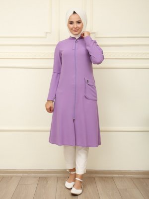 Moda Dua Lila Cep Detaylı Fermuarlı Kap