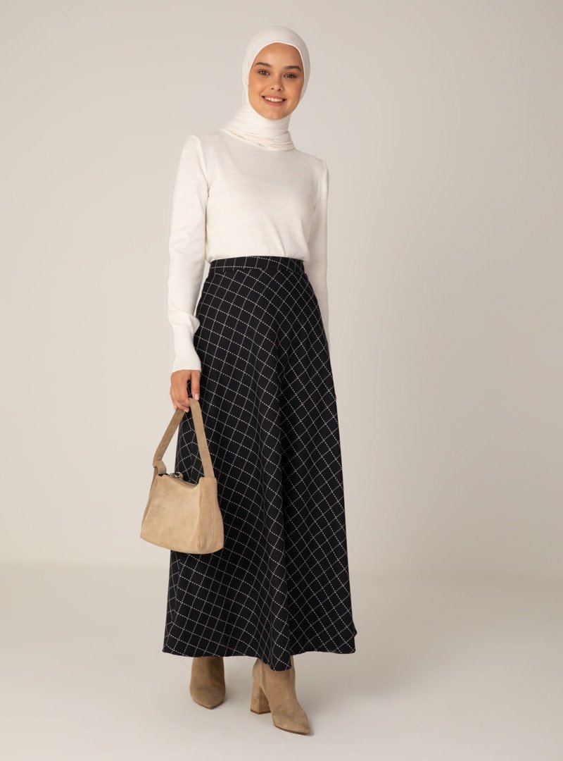 Almera Siyah Beyaz Desenli Etek