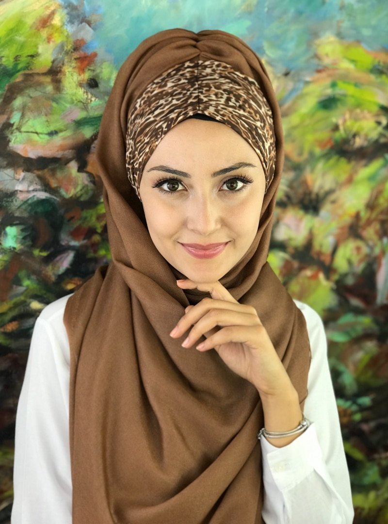 BUTİK AMBAR Kahverengi Leopar Desenli Büzgülü Hazır Şal