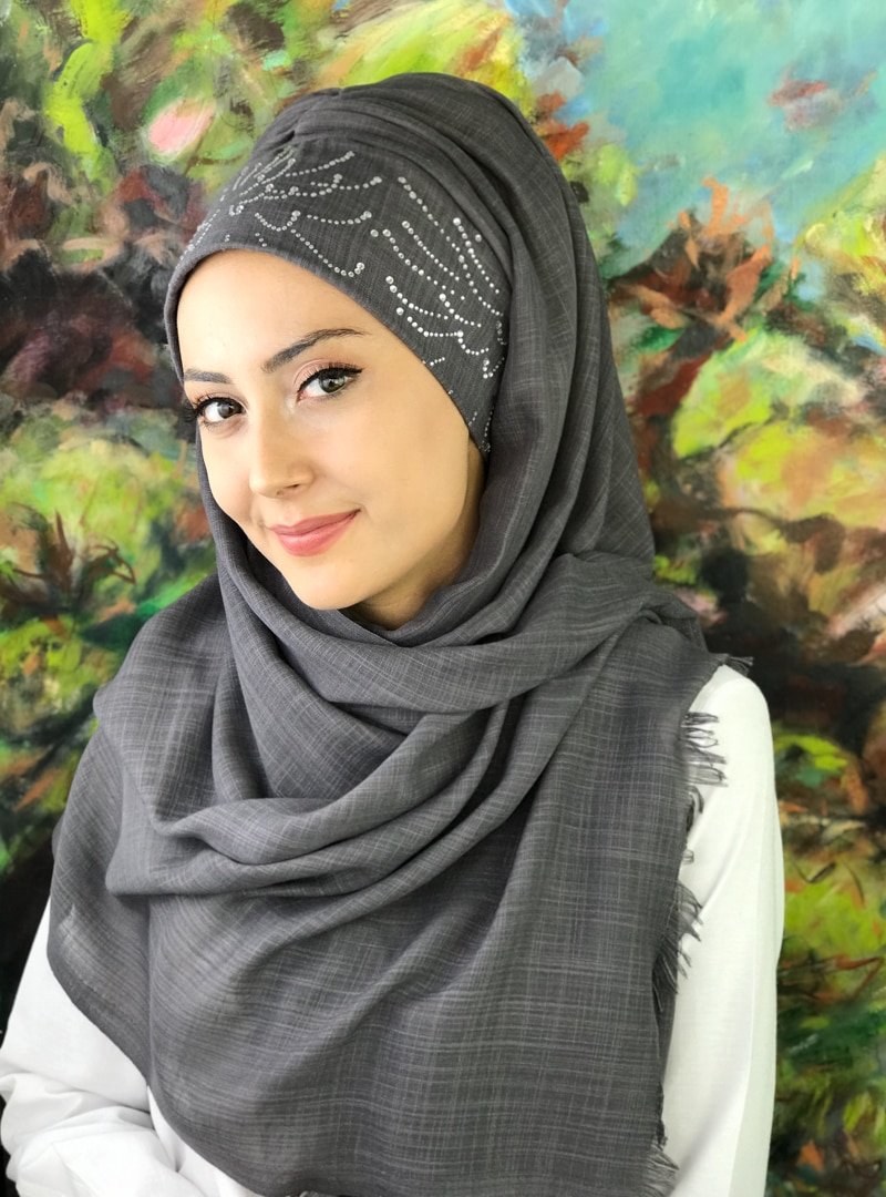 BUTİK AMBAR Füme Pul Baskılı Fişek Desenli Hazır Şal