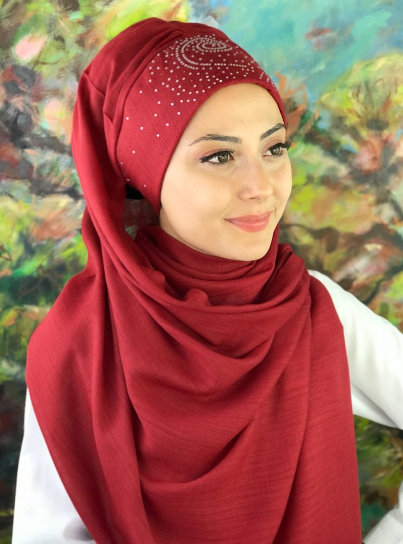 BUTİK AMBAR Bordo Pul Baskılı Hazır Şal