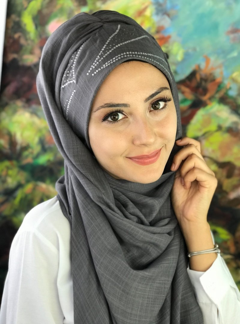 BUTİK AMBAR Füme Pul Baskılı Hazır Şal