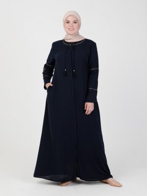 Jamila Lacivert Boydan Fermuarlı Ferace
