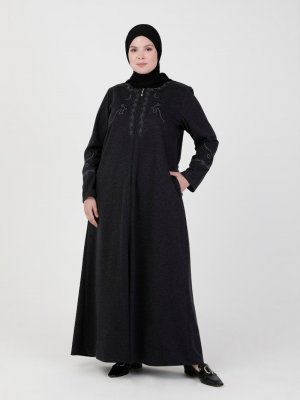 Jamila Lacivert Boydan Fermuarlı Ferace