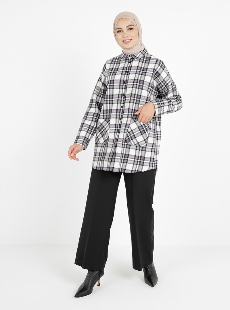 Tavin Mor Çıt Detaylı Ekoseli Tunik
