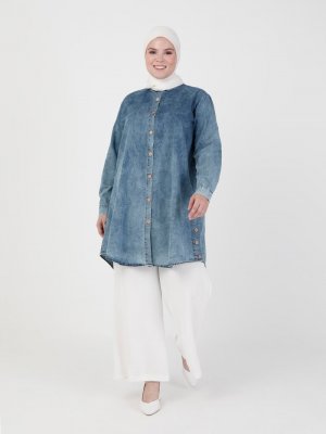 ZENANE Mavi Düğme Detaylı Kot Tunik