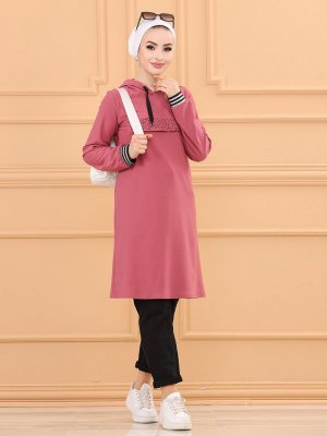 Tofisa Gül Kapüşonlu Tunik