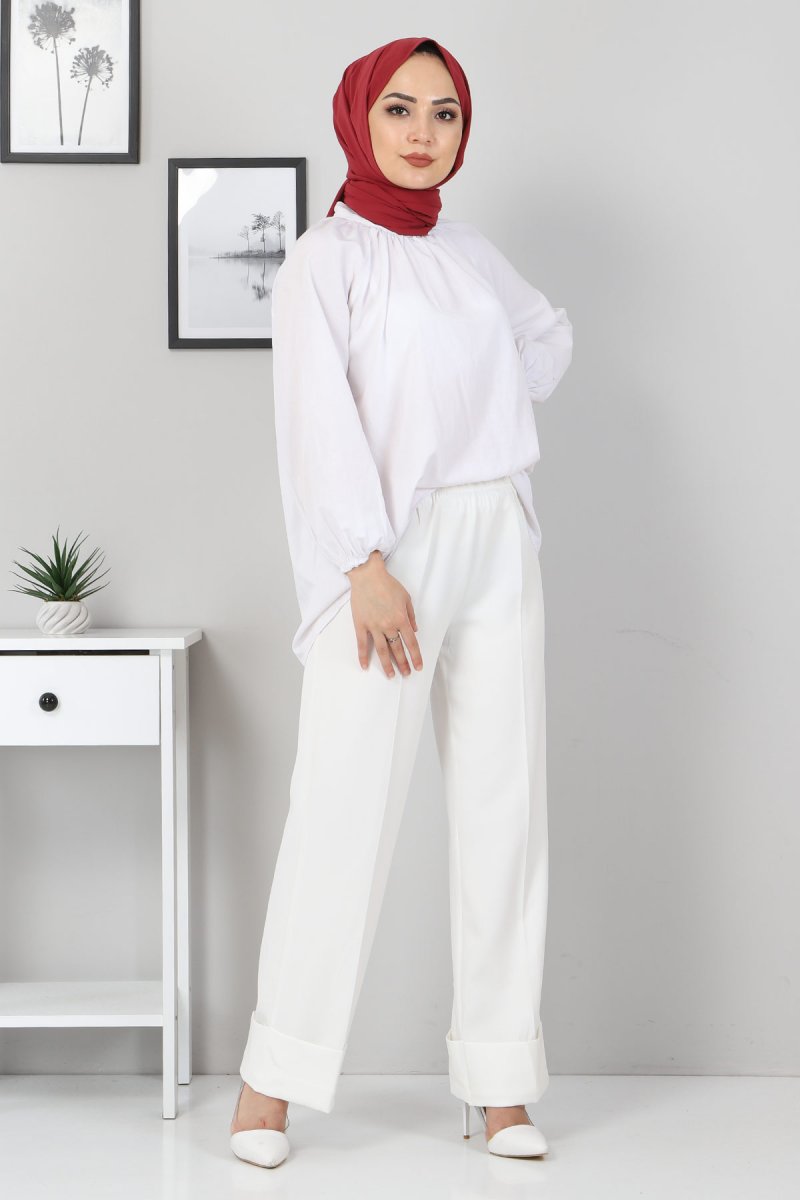 MISSVALLE Beyaz Duble Paça Kumaş Pantolon