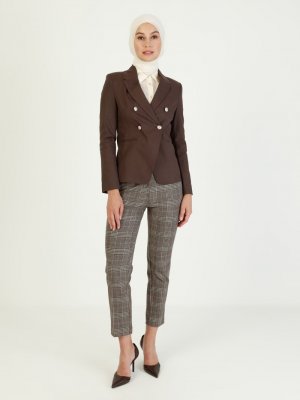 Ziwoman Kahverengi Düğme Detaylı Blazer Ceket