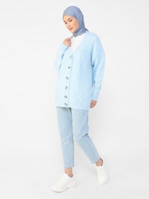 Benin Bebe Mavisi Jakarlı Düğmeli Triko Hırka
