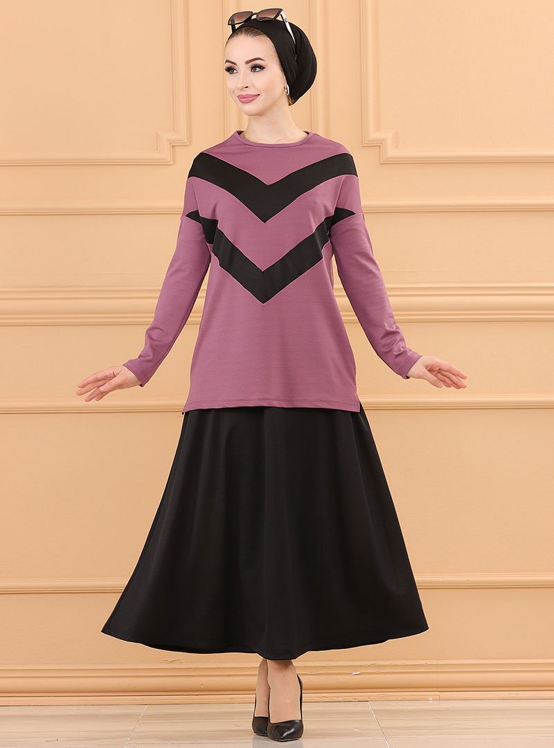 Tofisa Koyu Lila Bluz & Etek İkili Takım