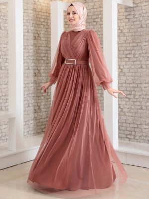 Fashion Showcase Design Soğan Kabuğu Taş Detaylı Tüllü Abiye Elbise
