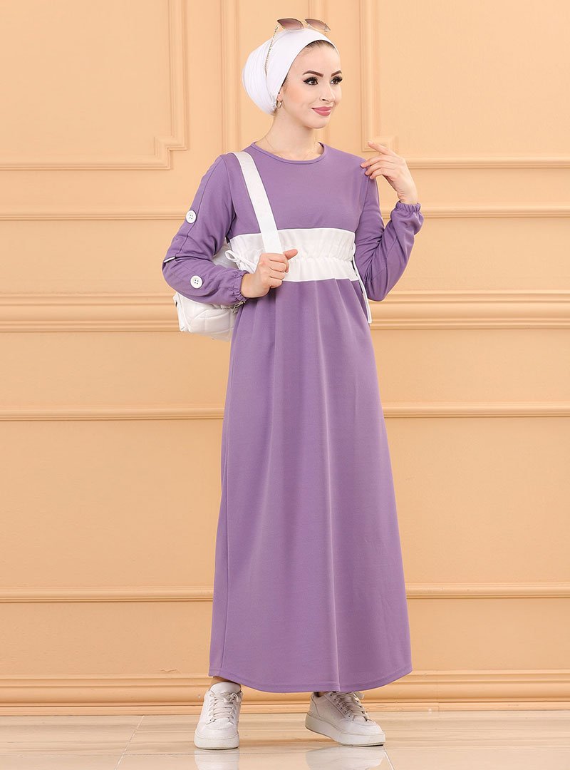Tofisa Lila Beli Büzgülü Elbise