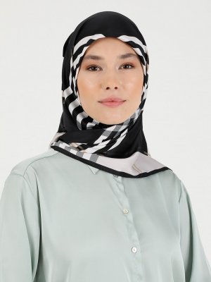 Karaca Eşarp Siyah Vizon Desenli Eşarp
