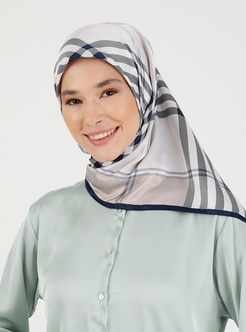 Karaca Eşarp Lacivert Krem Desenli Eşarp