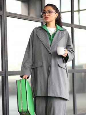 Ceylan Otantik Gri Çizgili Kısa Ceket