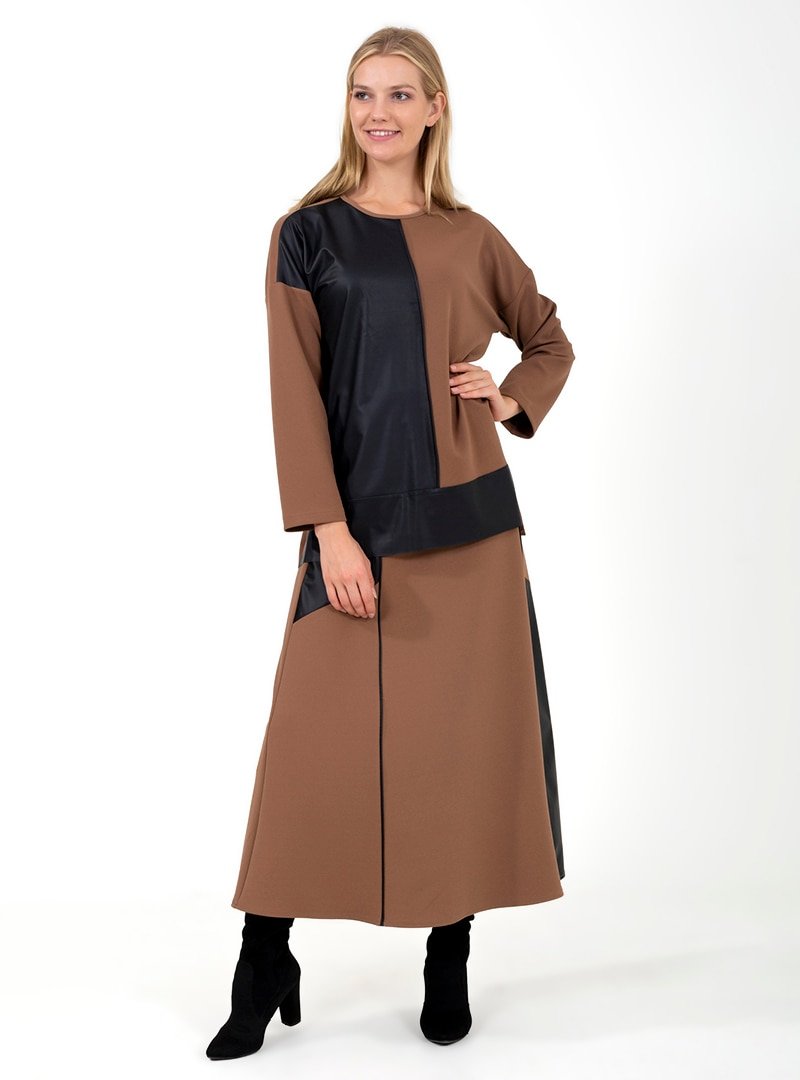 ONX10 Vizon Deri Parçalı Tunik & Etek İkili Takım
