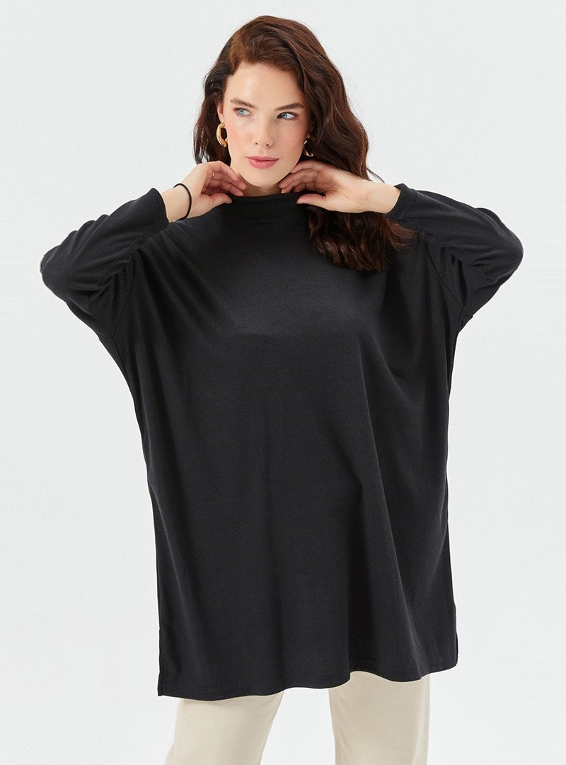 Muni Muni Siyah Salaş Kesim Boğazlı Tunik
