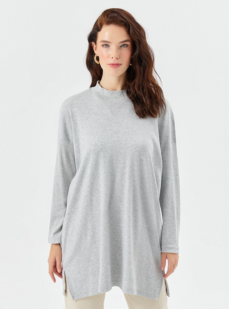 Muni Muni Gri Salaş Kesim Boğazlı Tunik