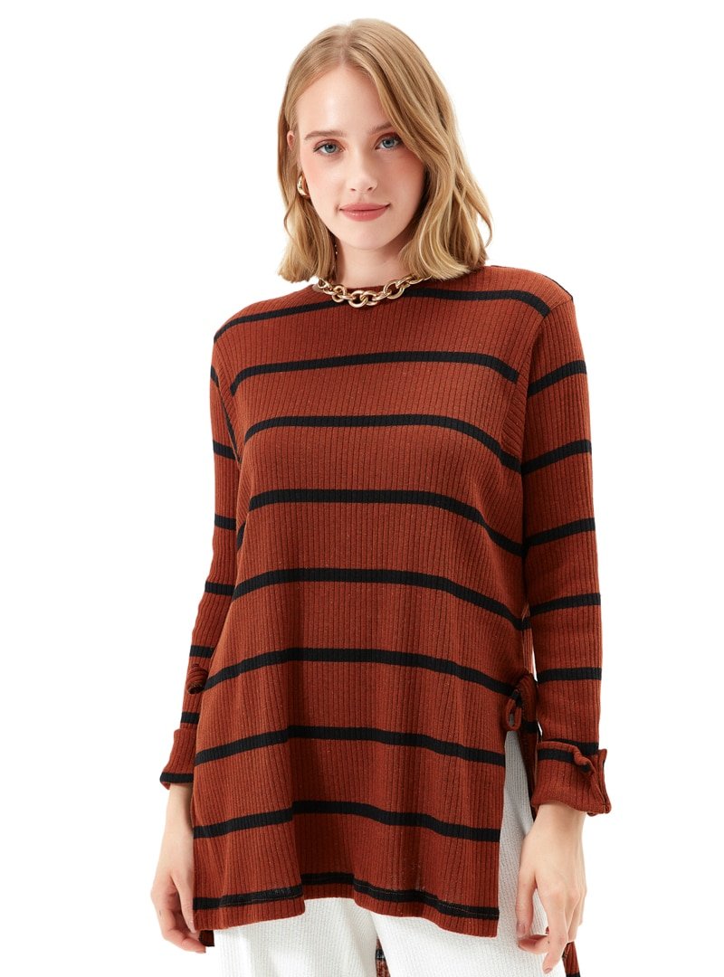 Muni Muni Kahverengi Yandan Bağcıklı Çizgili Tunik