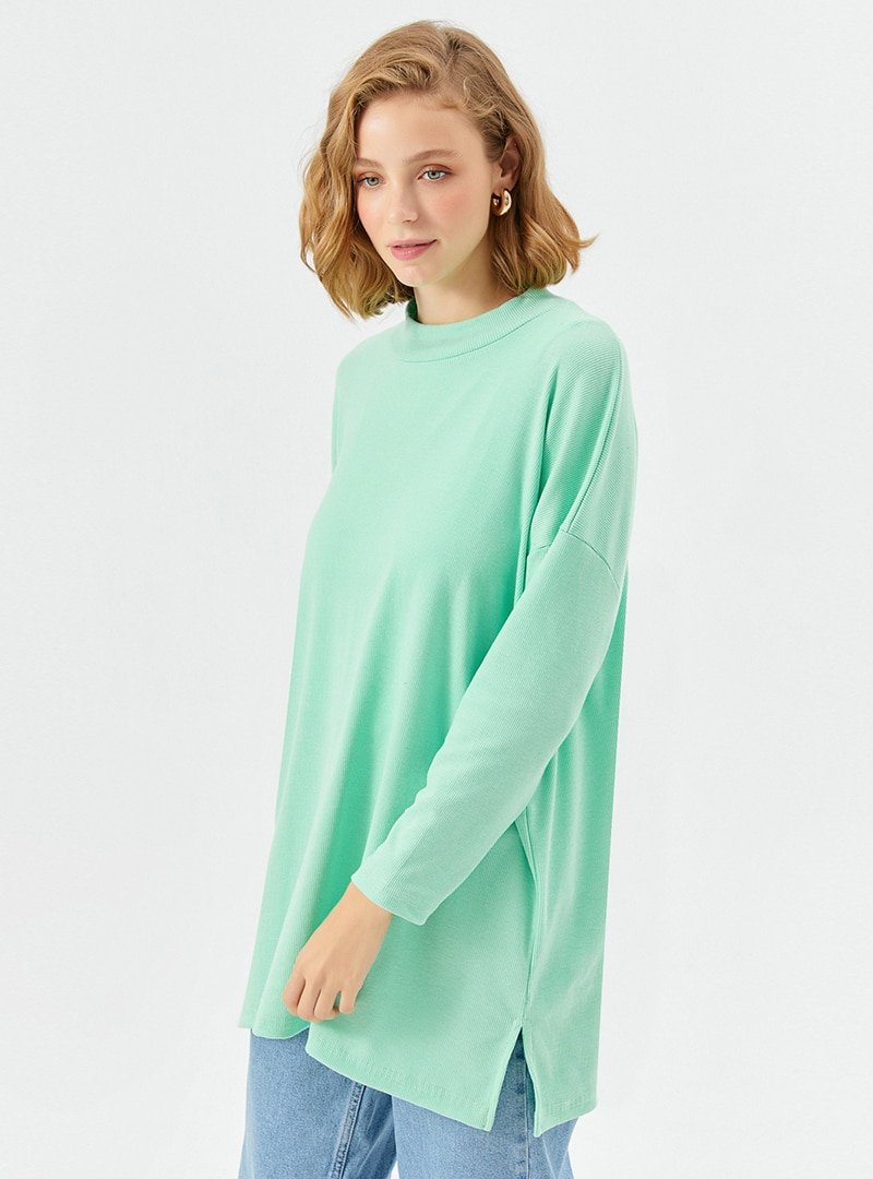 Muni Muni Fıstık Yeşili Salaş Kesim Boğazlı Tunik