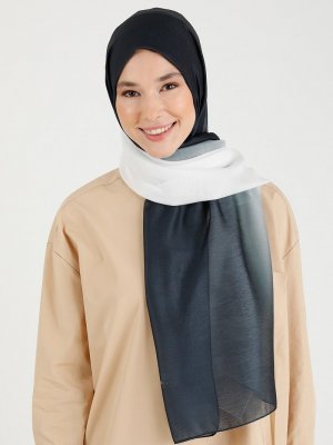 İpekhan Siyah Beyaz Degrade Desen Şal