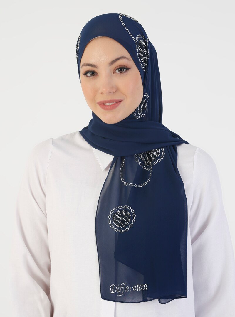DIFFERENZA Lacivert Zebra Topu Şifon Şal