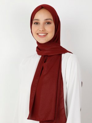 Balse Eşarp Bordo Simli Medine İpeği Şal