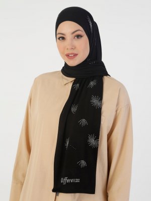 DIFFERENZA Siyah Crizantem Penye Şal