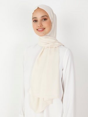 Balse Eşarp Kırık Beyaz Simli Medine İpeği Şal