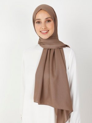 Balse Eşarp Kapuçino Simli Medine İpeği Şal