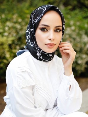 Tuva Karisik Monogram Desen İpeksi Twill Eşarp