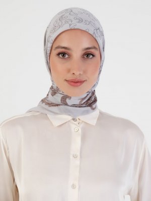 Peressa Gri Kahve Şal Desenli Eşarp