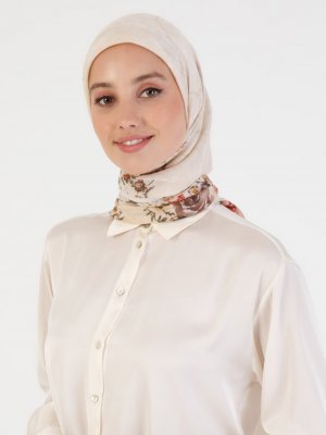 Peressa Krem Hardal Flower Desenli Eşarp