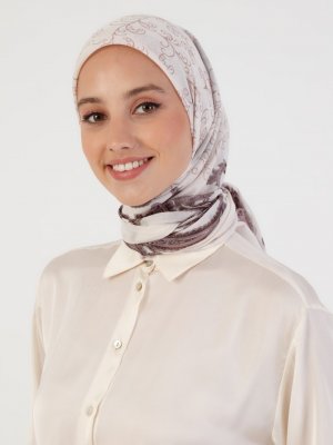 Peressa Krem Mürdüm Şal Desenli Eşarp