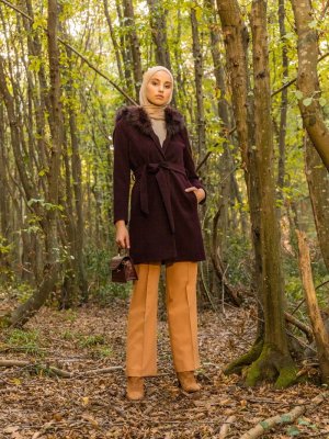 Concept By Olcay Mürdüm Kapüşonu Kürk Detaylı Kaban