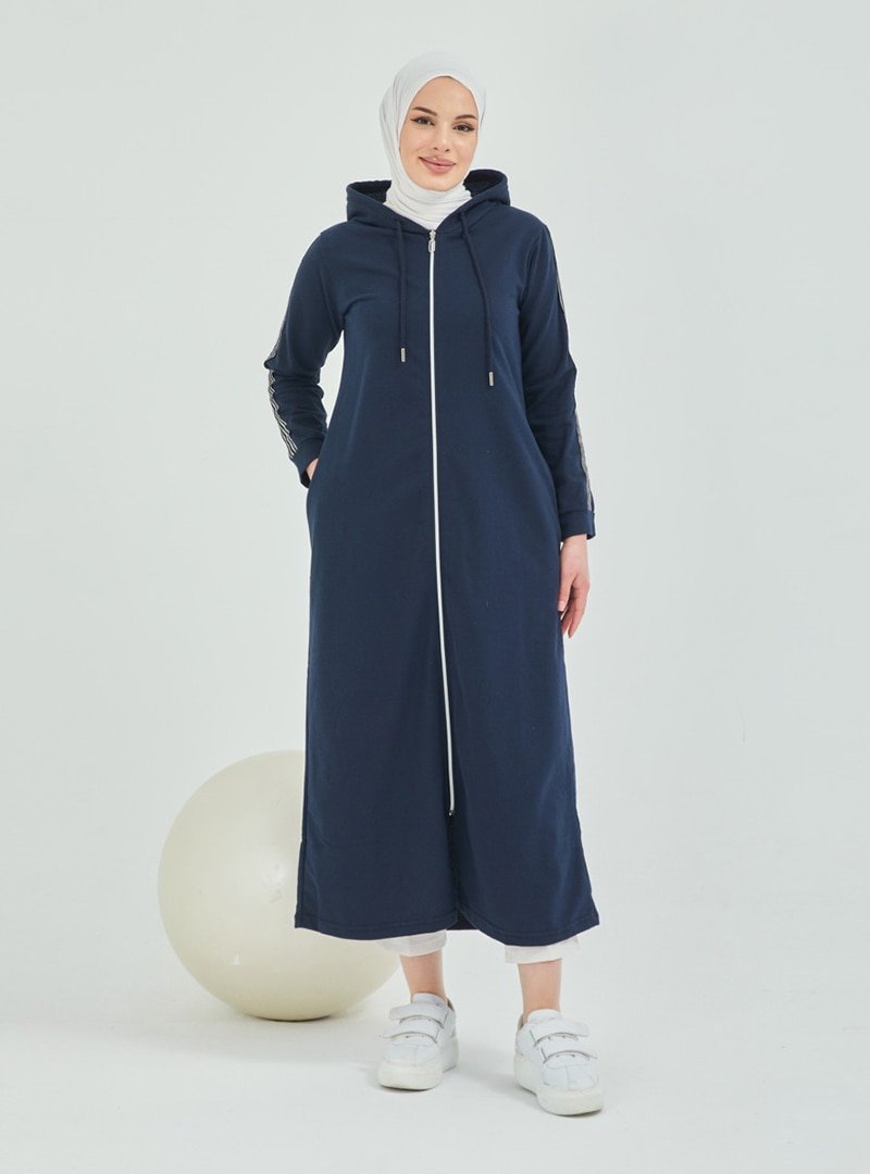 Topless Lacivert Önden Fermuarlı Kapüşonlu Ferace