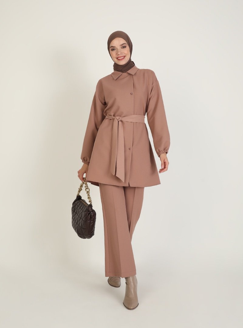 Ziwoman Açık Kahverengi Tunik & Pantolon İkili Takım
