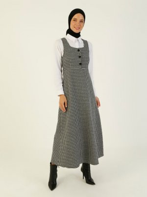 ZENANE Siyah Gri Kazayağı Desenli Elbise